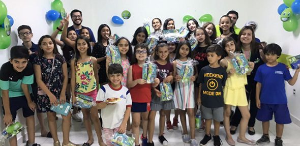 No mês de setembro, os alunos de Kids e Juniors da escola de Uberlândia Santa Mônica, tiveram a Cooking Class – Pancake Challenge (aula de culinária – Desafio da panqueca). Os participantes aprenderam como fazer deliciosas panquecas em inglês. Os alunos decoraram as panquecas com guloseimas e coberturas deliciosas. No final, fizeram uma competição para eleger a panqueca mais bonita e gostosa. Cada grupo apresentou sua obra de arte em inglês e os jurados avaliaram e escolheram a melhor panqueca. Todos se divertiram muito.