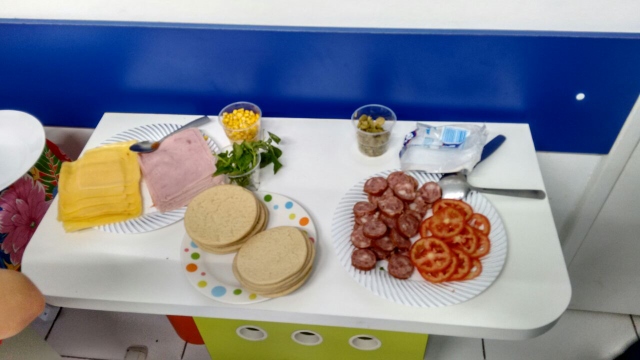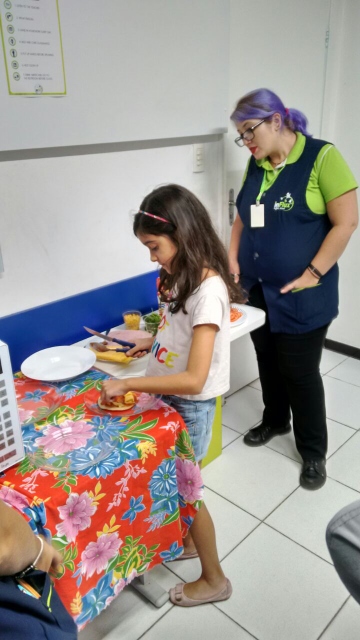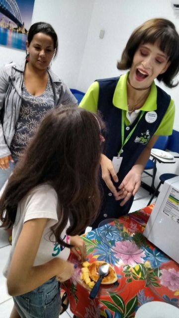 Usamos o vocabulário do Book 3 referente a cozinha, ingredientes e modo de preparo. As crianças que estiveram pressentes também participaram usando o vocabulário que eles sabem e com ajuda dos teachers que estavam na atividade, tudo foi show de inglês!