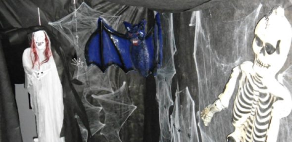 Os alunos adoraram a decoração e por diversas vezes se assustaram com a escuridão e os bichos.