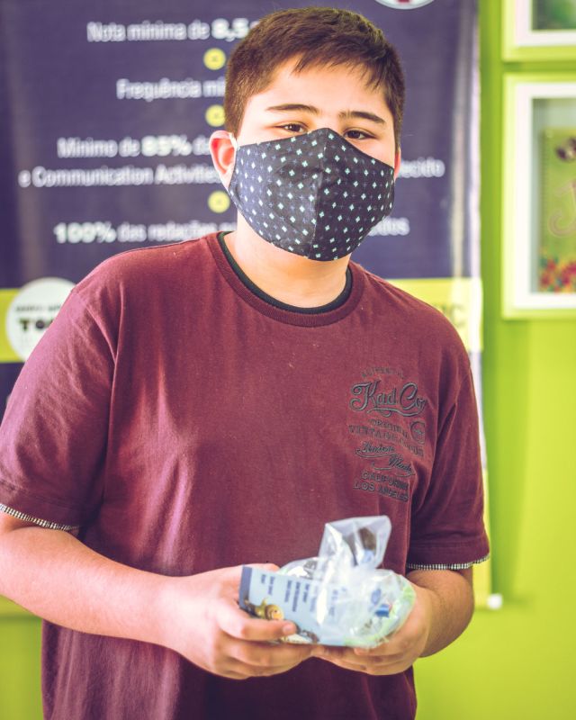 Nesta aula especifica a escola também criou um desafio onde os alunos precisavam formar uma frase em inglês. Quem enviasse primeiro a frase correta pelo chat, ganhava uma deliciosa Palha Italiana!