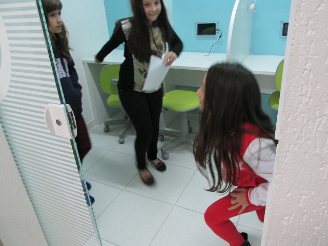 A aluna Ana Clara aprendeu sobre o mistério da caveira de cristal e ficou muito contente de poder trazer sua amiga para participar da atividade também!