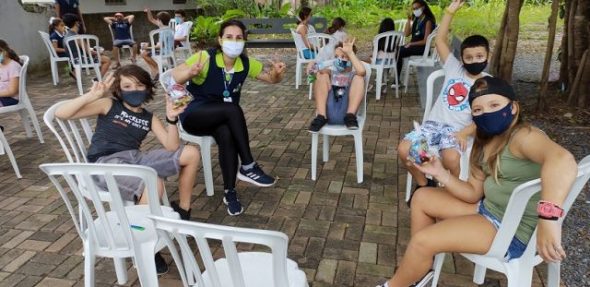 A criançada foi dividida em equipes, e eles seguiam as pistas espalhadas pelo estacionamento e recolhiam doces no trajeto até a etapa final. O dia foi repleto de diversão, aprendizado, comunicação e integração, e é claro, muita segurança. O uso de máscara foi obrigatório durante toda a atividade, assim como o distanciamento social.