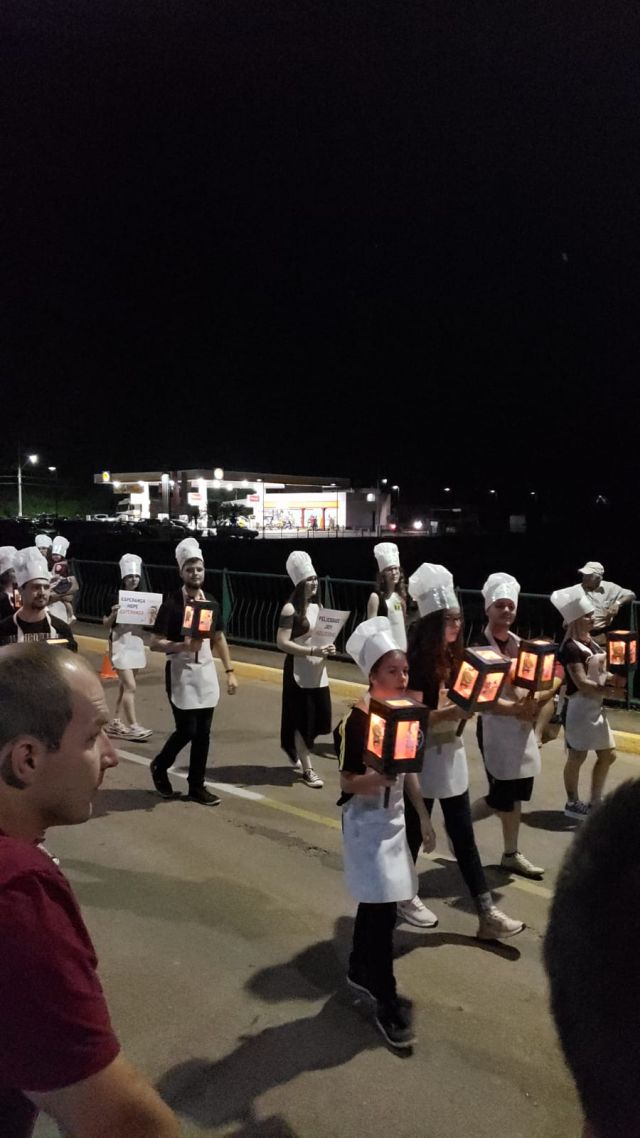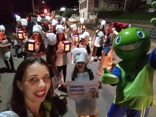 Os estudantes trouxeram seus familiares, e juntos, caminharam pelas ruas da cidade de Ibirama mostrando o real sentido desta data comemorativa tão importante! O tema foi o Biscoito de Gengibre, o desfile contou com a presença do Fluxie e dos alunos vestidos de confeiteiros. Cada aluno levava uma lanterna ou uma plaquinha contendo os ingredientes para se fazer o melhor Biscoito de Gengibre de Natal.