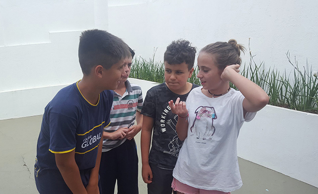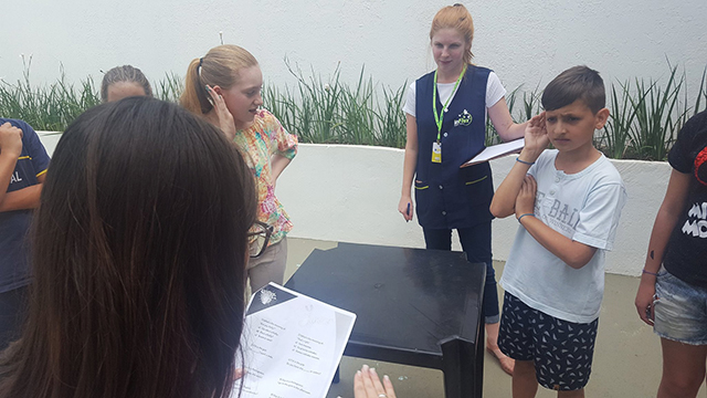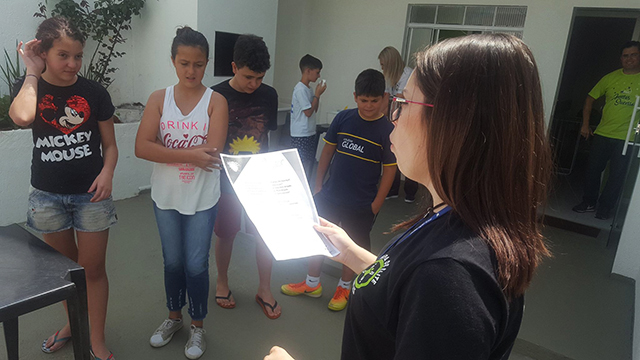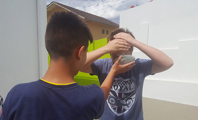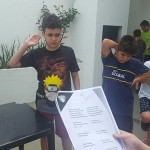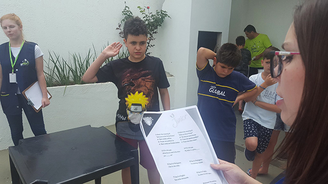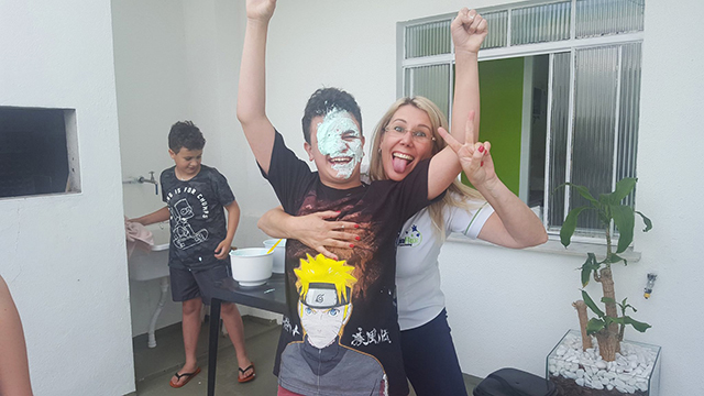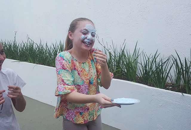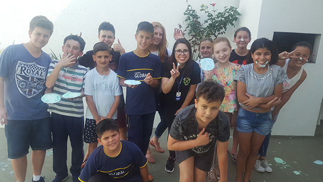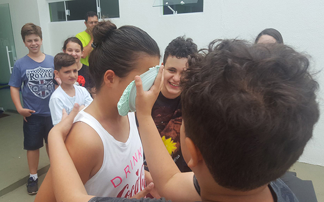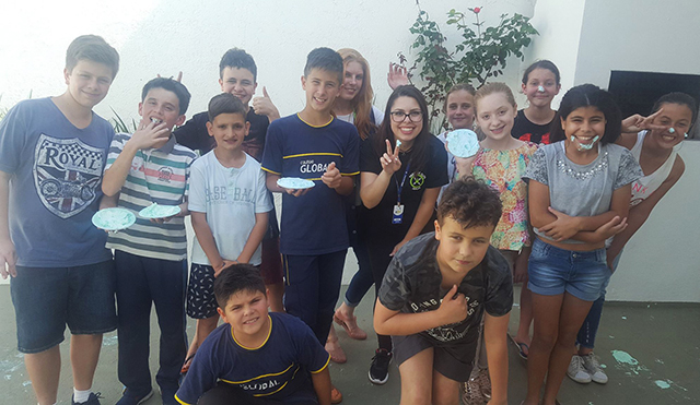 Na última sexta-feira, 17/11, nossos alunos de Junior participaram do Face the Pie (Torta na Cara). Eles se dividiram em duas equipes (Green and Blue) e testaram seus conhecimentos de inglês e, é claro, no maior estilo Passa ou Repassa: quem errava levava torta na cara!
