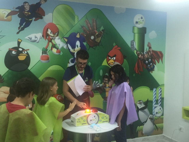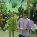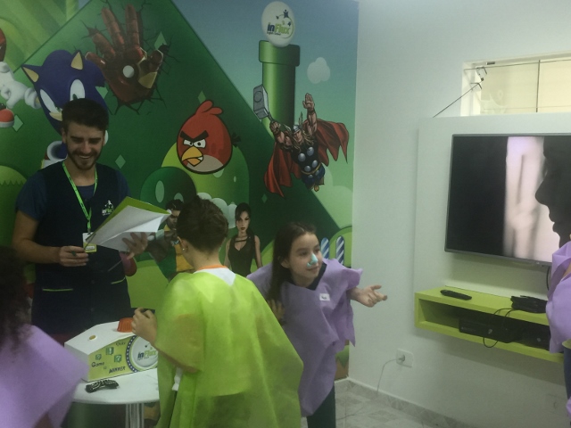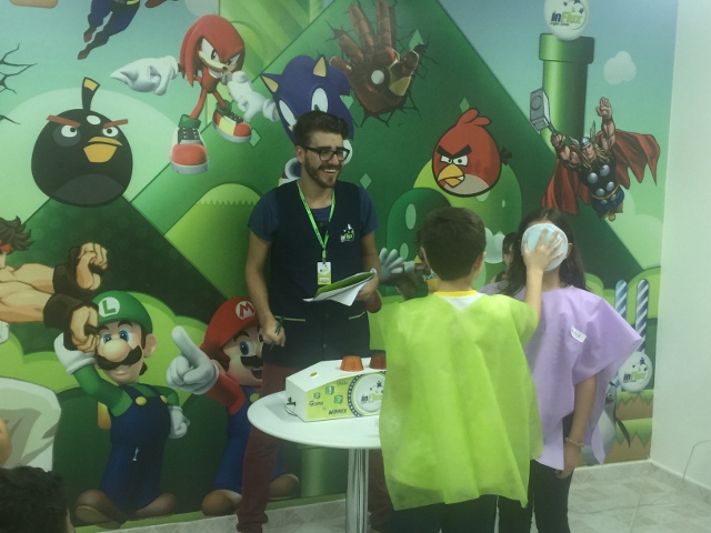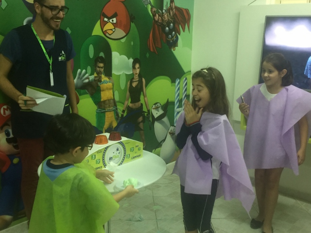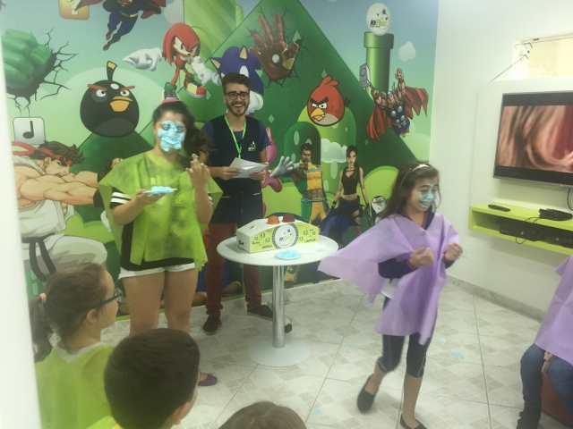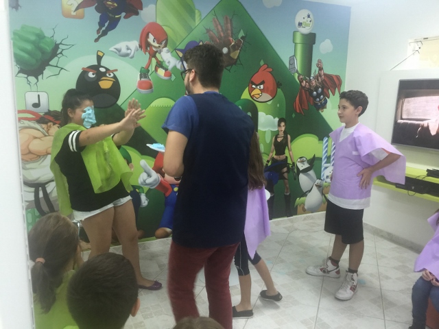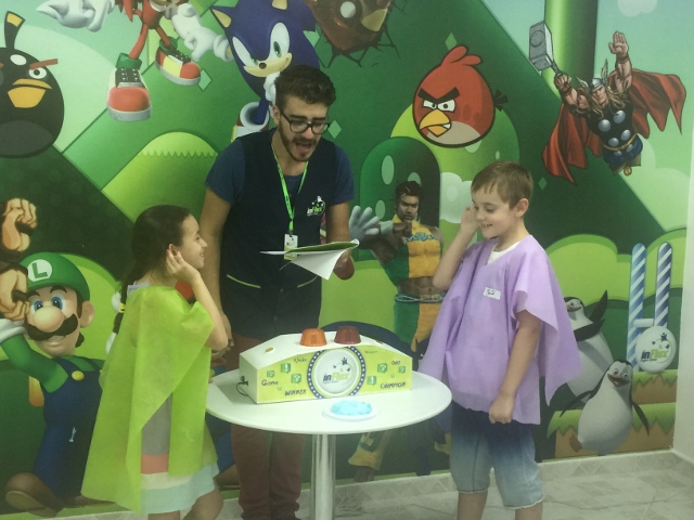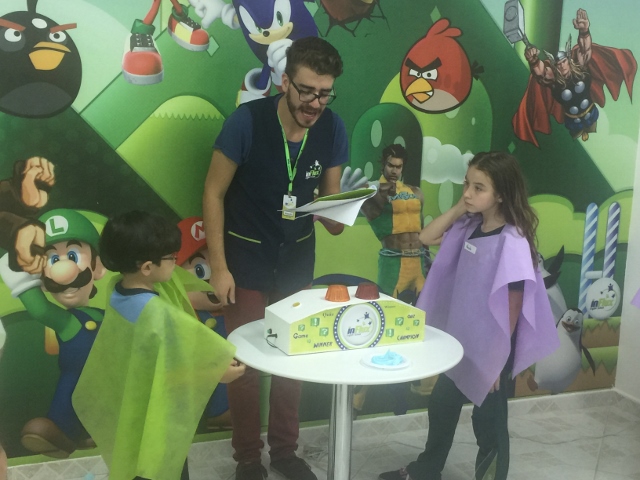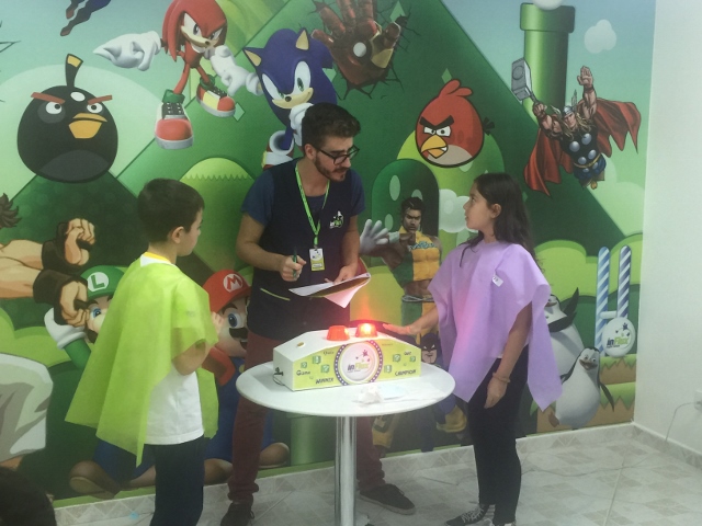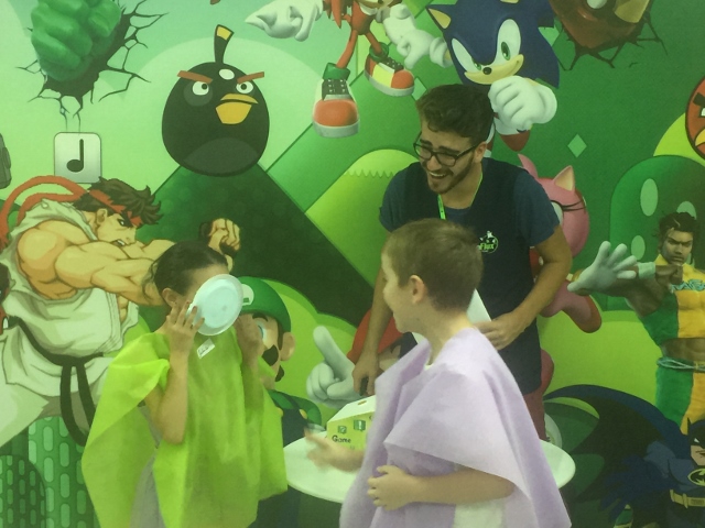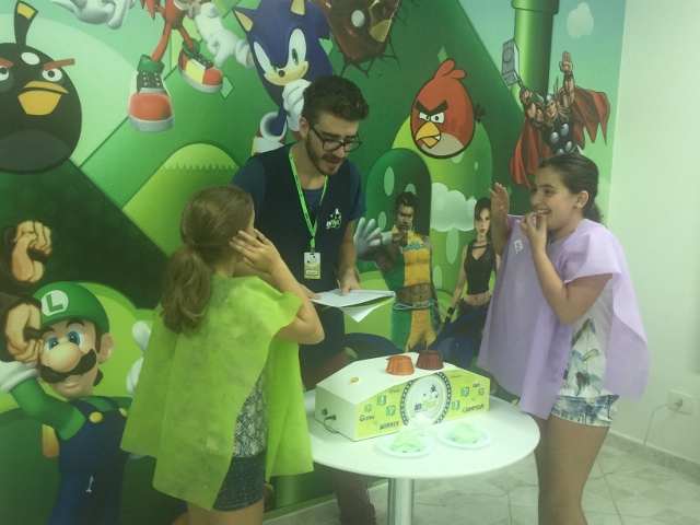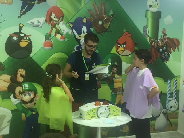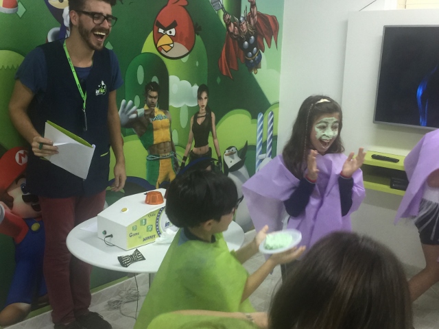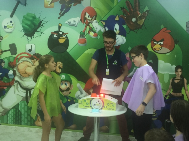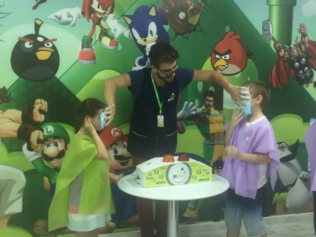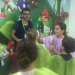Nossas turmas de Backpack e Junior arrasaram no Quiz. Além de praticarem o inglês, se divertiram dando torta na cara dos amigos. E não tem essa de: “na dúvida não responde”. O teacher Rômulo ficou encarregado de dar tortadas na dupla que não respondeu.