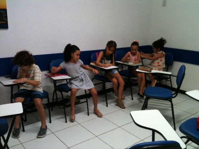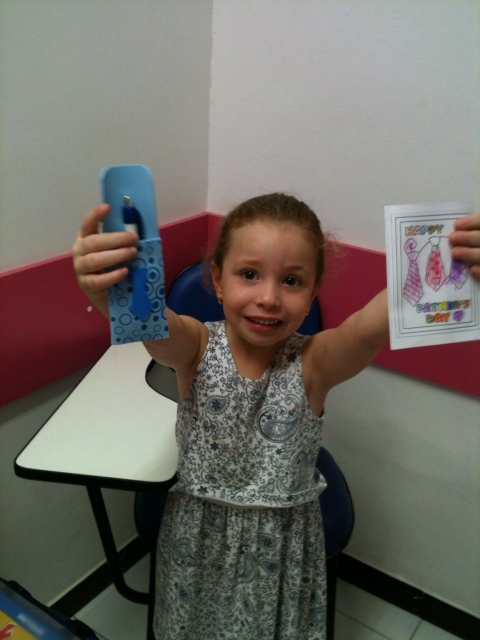 A teacher decidiu aproveitar a preparação dos presentinhos para ensinar outras estruturas e vocabulário, além dos conteúdos já estudados durante a hora de aula. A teacher também escreveu e ensinou no quadro, algumas estruturas para que os alunos façam bonito na hora de parabenizar o “Dad” tais como: “I love you Dad! Happy Father’s day” etc. Foi muito legal ver o amor e o empenho com que os alunos fizeram as lembranças.