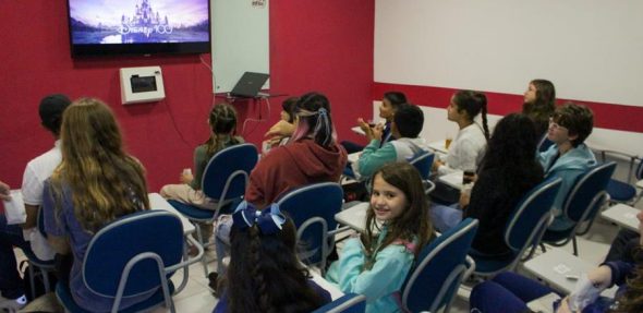 Os alunos kids e juniors da inFlux Ingleses tiveram uma tarde maravilhosa com uma mega sessão de cinema com muita pipoca e prática do inglês.