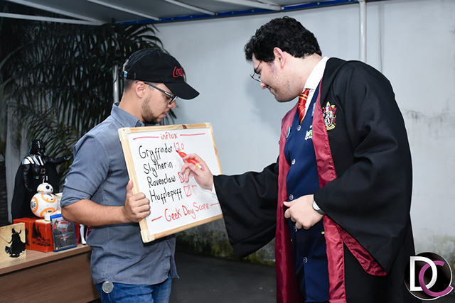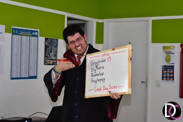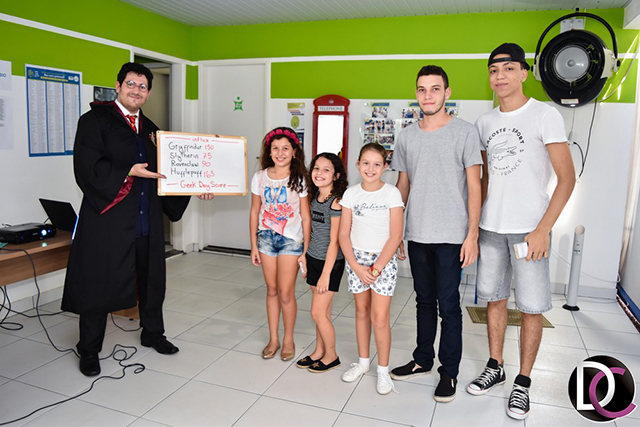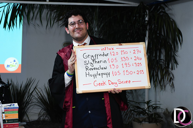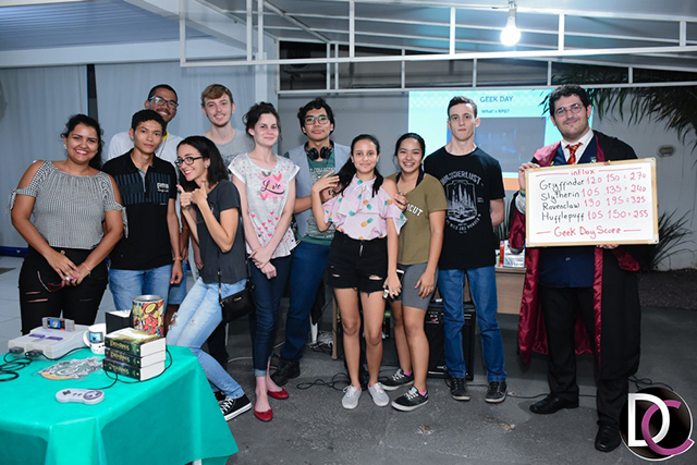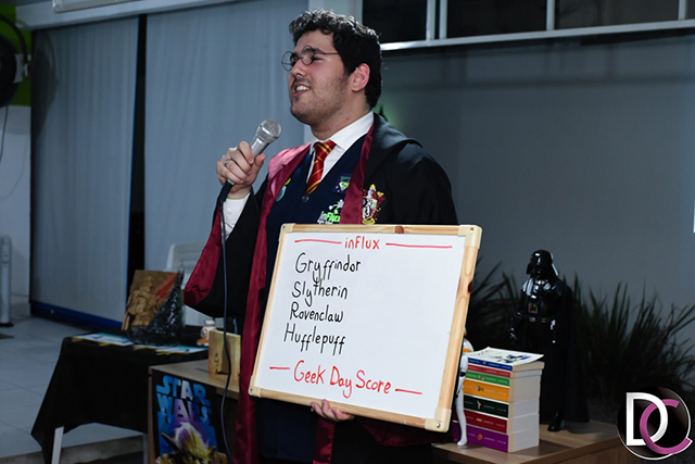 O evento – realizado em dois horários – foi uma competição de conhecimento que reuniu cerca de cem participantes dividos em grupos com os nomes das quatro casas de Hogwarts, a escola de magia e bruxaria da série Harry Potter. No clima da competição anual das casas, os alunos da Grifinória, Sonserina, Corvinal e Lufa-Lufa responderam a um Quiz, apontaram os autores de citações marcantes do universo Geek e identificaram cenas de seus filmes e séries favoritas na busca pelo primeiro lugar, e após várias rodadas bastante acirradas a Lufa-Lufa (Hufflepuff) venceu o evento vespertino com 165 pontos. A noite, foi a vez da Corvinal (Ravenclaw) vencer a competição com o espantoso placar de 325 pontos!
