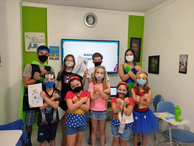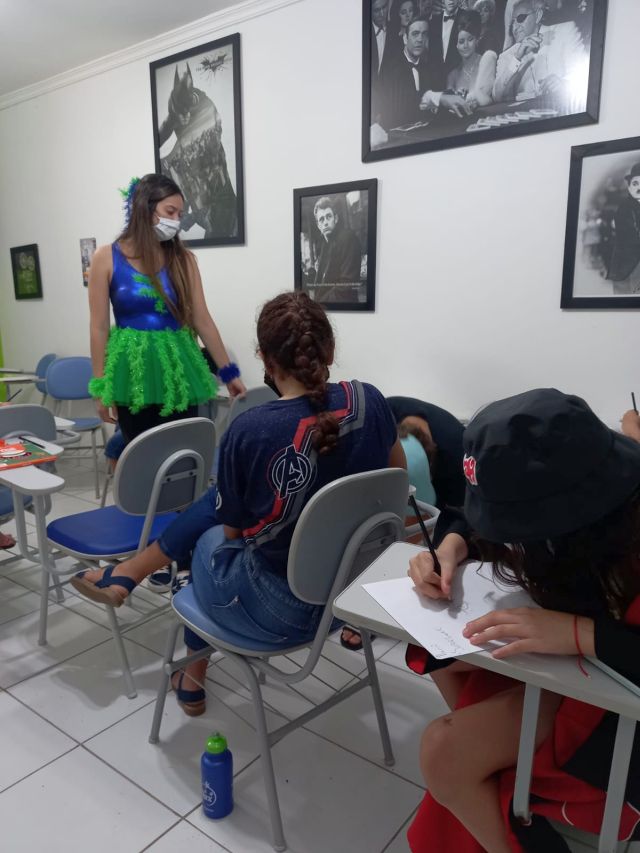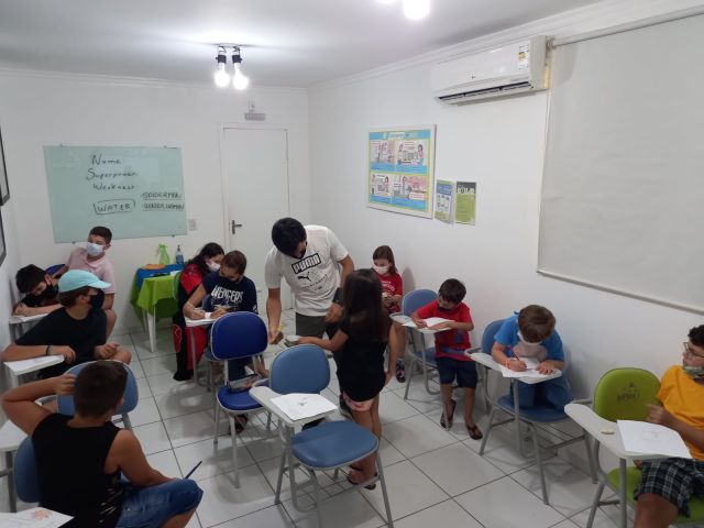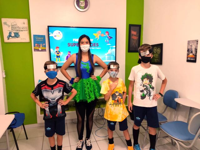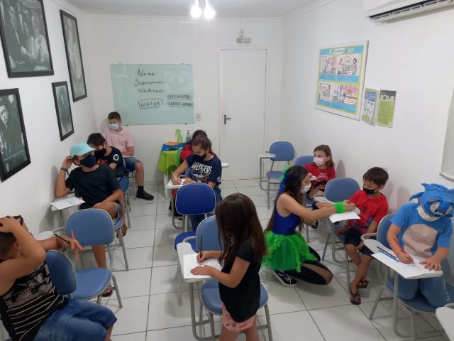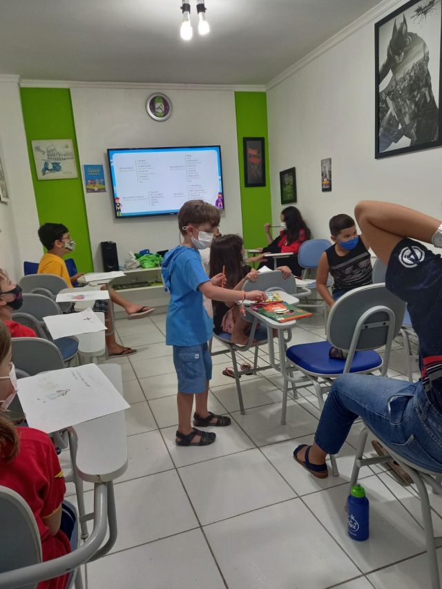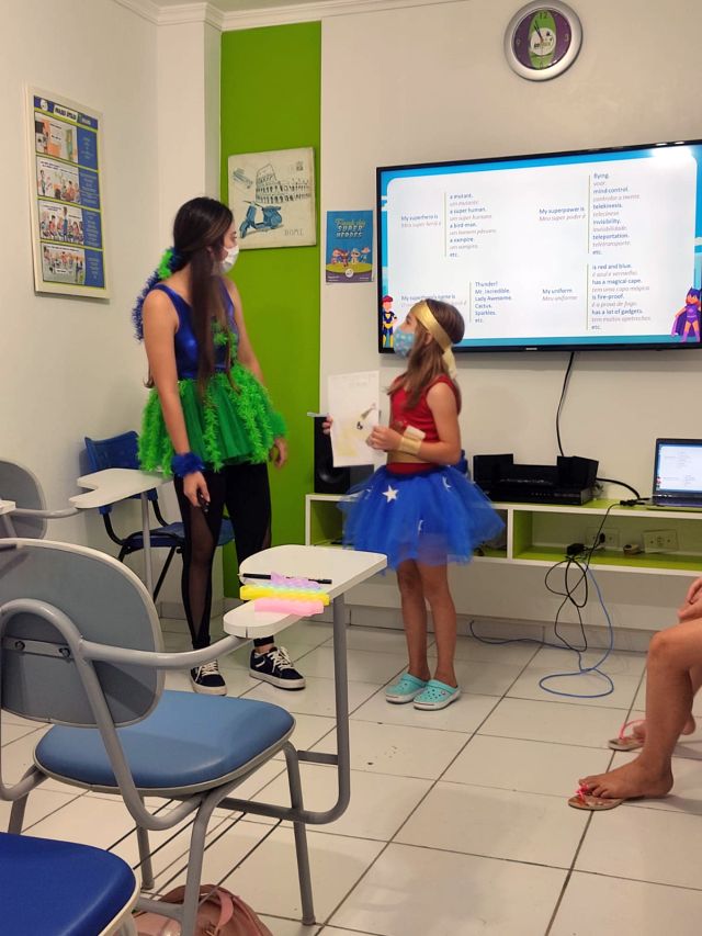 Na atividade, questões como a importância dos heróis foram abordadas, mas não ficou apenas por isso, foram praticados vários chunks sobre superpoderes, superarmas, habilidades, e também chunks sobre o que os pequenos prefeririam ter ou ser, relacionado aos heróis.