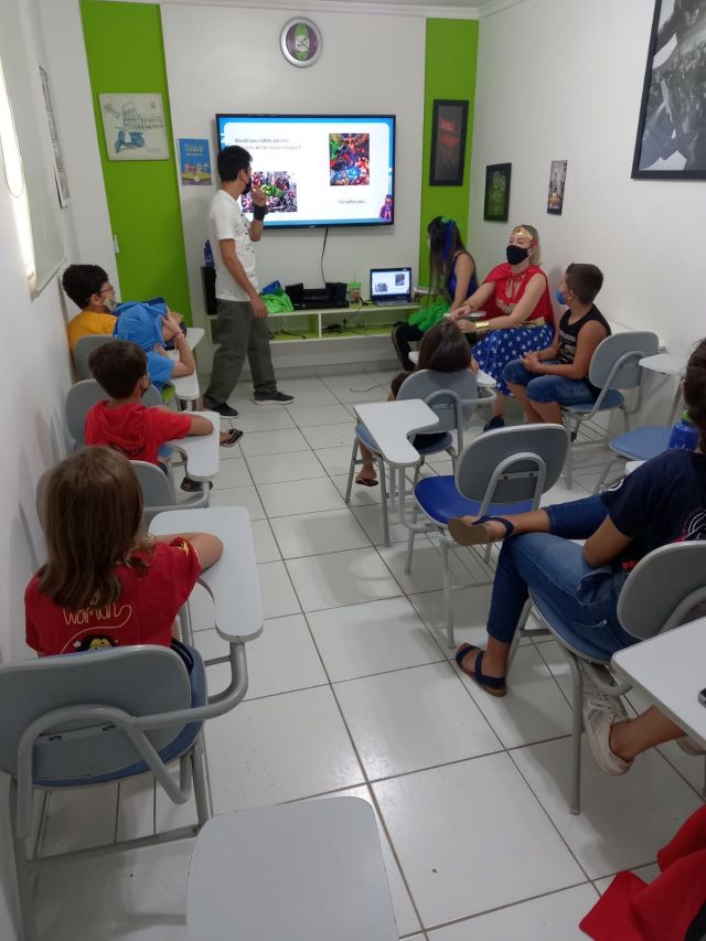 Para finalizar a atividade, e incentivar a interação e inclusão entre eles, os pequenos foram divididos em grupos para mostrar o quantos eles sabem sobre os heróis, em um quizz superdivertido.