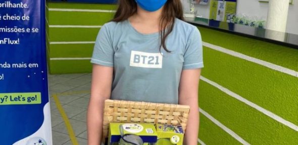 A aluna da inFlux Recife, Alice Domingues foi a ganhadora da promoção de volta às aulas e ganhou uma cesta repleta de produtos inFlux, contendo caneca de cerâmica, headphone, estojo, máscara e o mascote Fluxie! Parabéns, Alice!