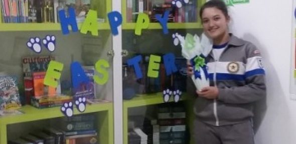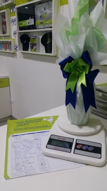 “Para a nossa aluna Fernanda Luiza, a Páscoa chegou mais cedo; ela foi a ganhadora da nossa brincadeira “Guess the weight of the Easter Egg” (Adivinhe o peso do ovo de Páscoa) com o palpite de 300g … por 4g não acertou em cheio o peso do ovo que era 296g!