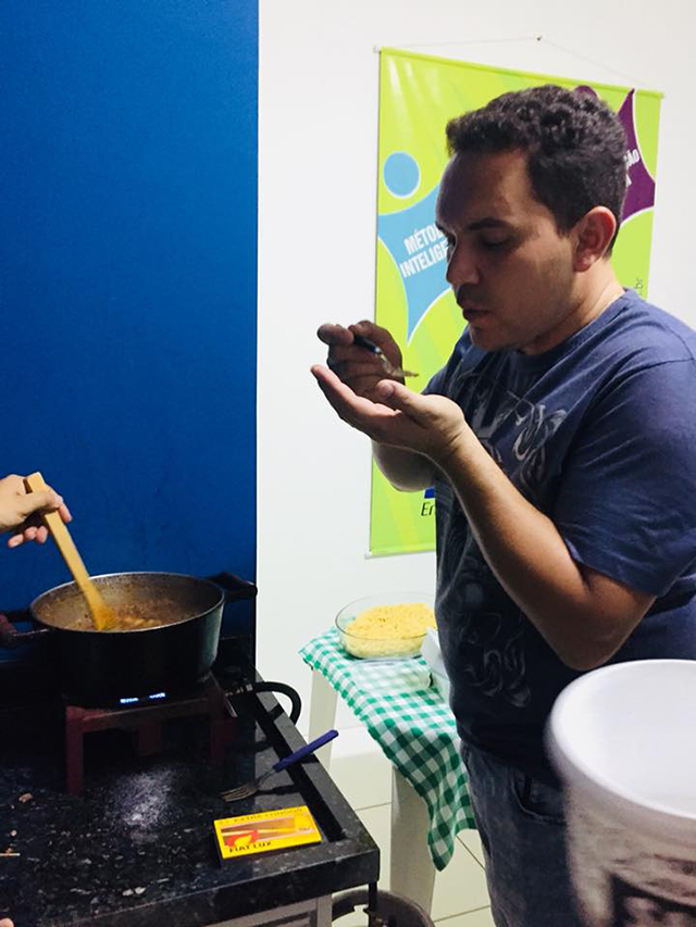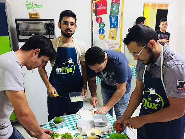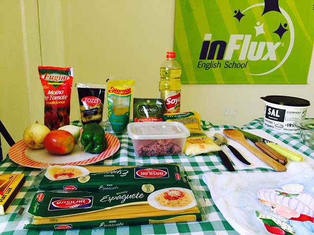 Depois de aprender todo o vocabulário para cozinhar em inglês na Lesson 11, eles puderam preparar uma receita de espaguete com carne moída, ou Ground Beef Spaghetti, utilizando todo o vocabulário e expressões que aprenderam em aula, colocando em prática o idioma, se divertindo e, claro, saboreando o resultado final do prato típico de domingo!