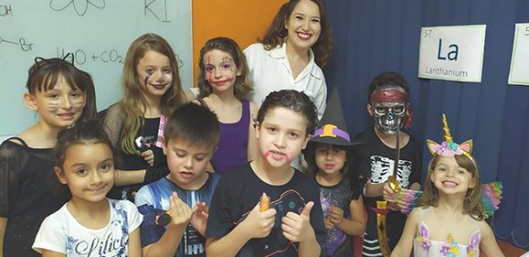 A sexta feira de Halloween foi bastante movimentada na inFlux Jd. das Américas. As crianças dos 6 aos 12 anos puderam participar de alguns workshops de Halloween. Houve uma oficina de decoração de cookies de halloween, onde os alunos puderam colocar toda sua criatividade em prática. A escola contou com a presença de uma bruxa contando histórias para as crianças e uma cientista que fez experimentos reais, onde a criançada pôde participar ativamente. Em outra atividade todos tiveram a oportunidade de confeccionar as próprias máscaras de halloween e já sair fantasiado com suas novas criações. Nesta festa, também não podia faltar o concurso de melhor fantasia para os pequenos. Todos brilharam e arrasaram muito!