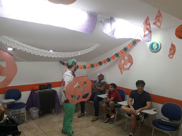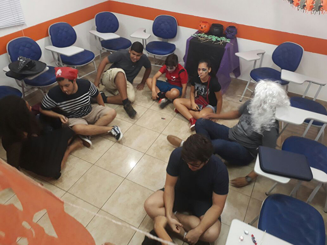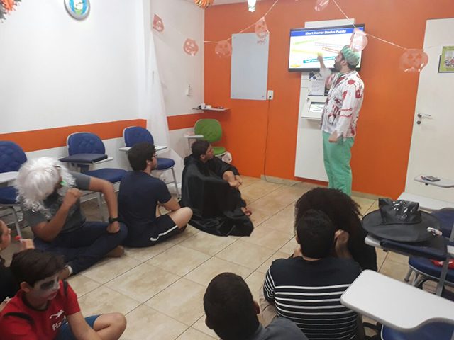 Neste Halloween, nossos alunos Teens e Adults contaram histórias de terror realmente assustadoras e também aproveitaram para adoçar a noite do dia 27/10 com doces.