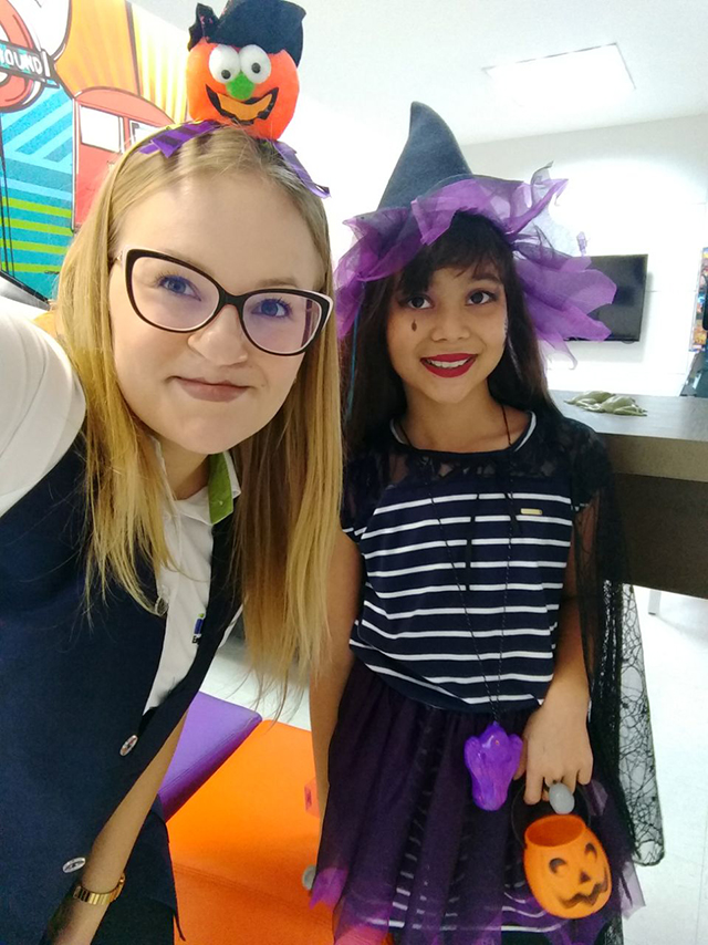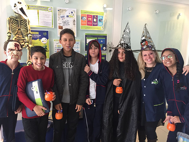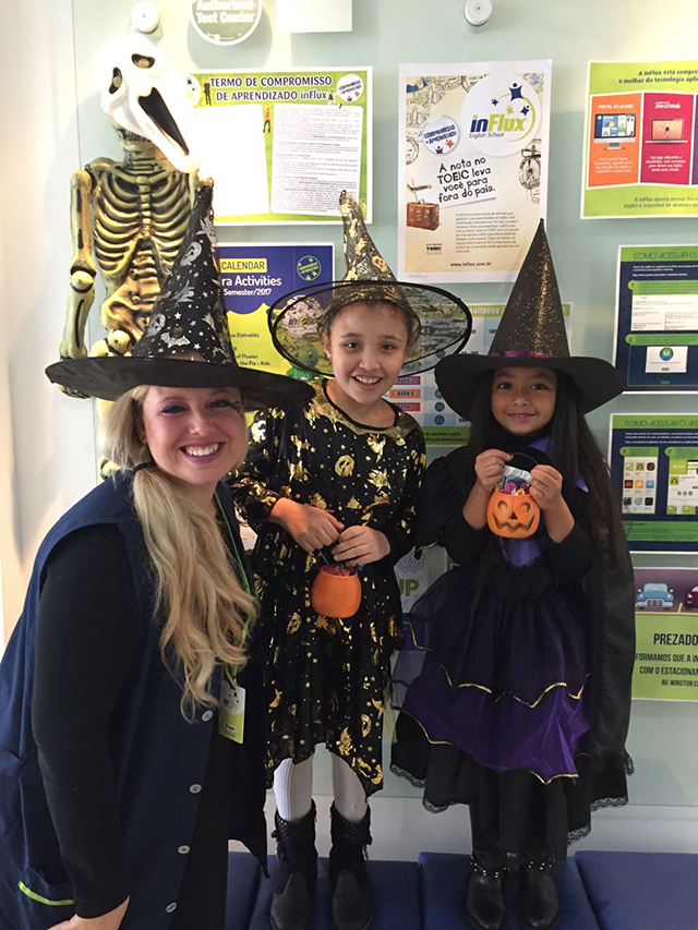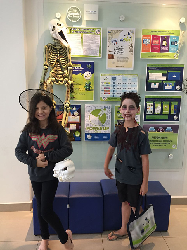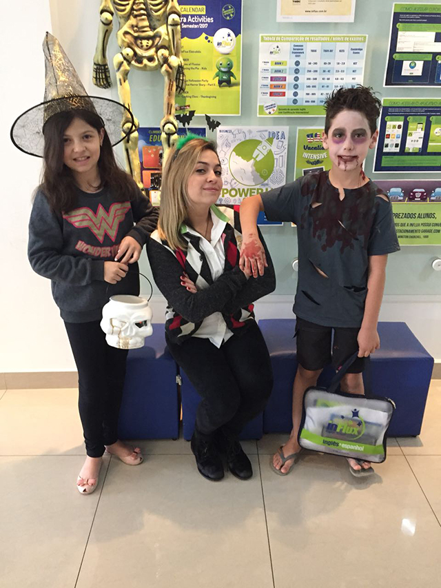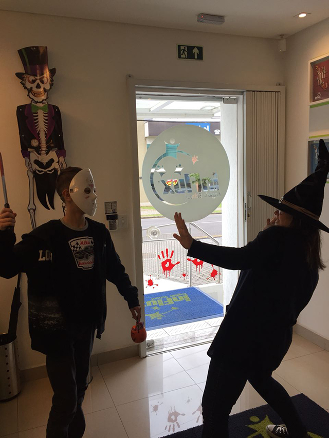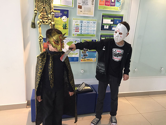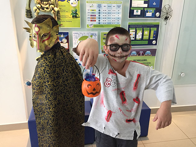 Os alunos do Kids Course e Junior Course vieram fantasiados para a aula e abusaram da criatividade nessa hora! Tivemos médico zumbi, Sherlock Holmes e até uma múmia! E também contamos com a presença de muitas bruxas e vampiros!