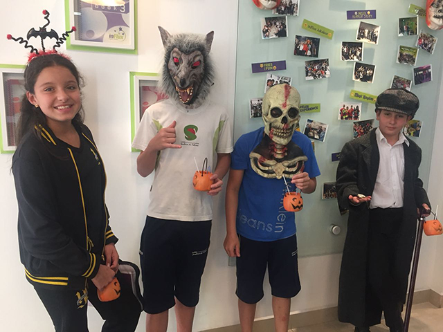 Antes de começarmos a atividade, os professores explicaram a tradição e como falar “Gostosuras ou Travessuras” em inglês. Após isso, foi dada a largada à caçada dos doces pela escola!