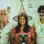 Nosso Categories Game também teve Halloween como tema. A aluna Maria Beatriz Pereira foi a maior pontuadora e ganhou um headphone roxo da inFlux.