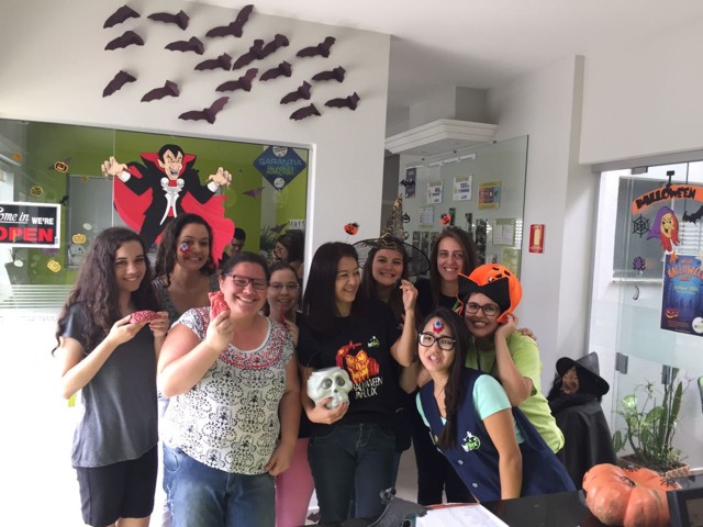 Tivemos desfile de fantasias, provas relâmpagos feitas em inglês, brincadeiras, música e muita animação!