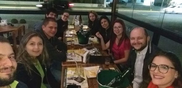 O Happy Hour aconteceu em um bar aqui de Joinville e reuniu alunos de todos os níveis das unidades Centro e Norte.