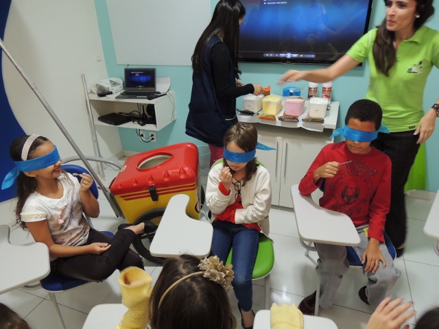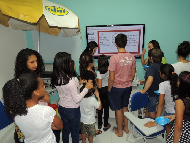 Os alunos assistiram ao desenho “Oswald – Job for a day”, com o qual puderam desenvolver vocabulário sobre um dos sentidos fundamentais do ser humano – o paladar. Eles praticaram expressões de sorveteria e participaram do desafio de acertar, com os olhos vendados, diferentes sabores de sorvetes.