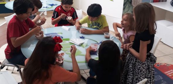 Os alunos puderam escolher entre sorvete de flocos, chocolate e chiclete, e puderam incrementar com coberturas e confeitos coloridos!
