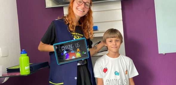 O aluno Mathias, do Fluxie and Friends, da unidade inFlux Água Verde, escolheu o tema “AMONG US” para sua aula bônus na última sexta-feira!