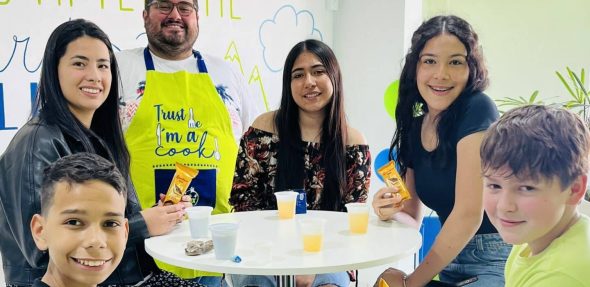 Eles se divertiram muito enquanto faziam pedidos na lanchonete da inFlux e conversavam em inglês e espanhol. Com certeza já estão preparados para comer muito nas viagens que farão para o exterior!