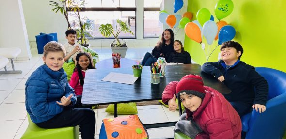 Antes de começarem as brincadeiras no evento da inFlux Araucária, cada time fez sua própria bandeira, deixando a criatividade rolar solta! Afinal de contas, não dá para faltar aquele desafio amigável entre equipes, né?! Mas todo mundo sabe que no final das contas, todos saem ganhando com experiências cheia de risadas, comida saborosa e inglês na prática!