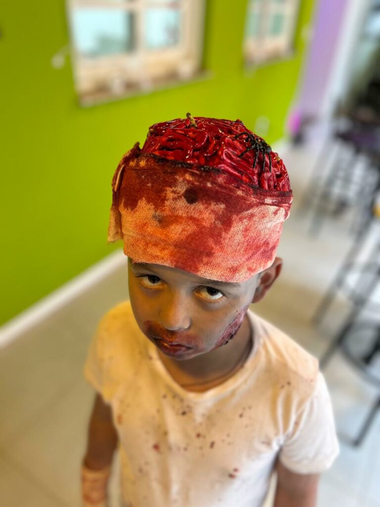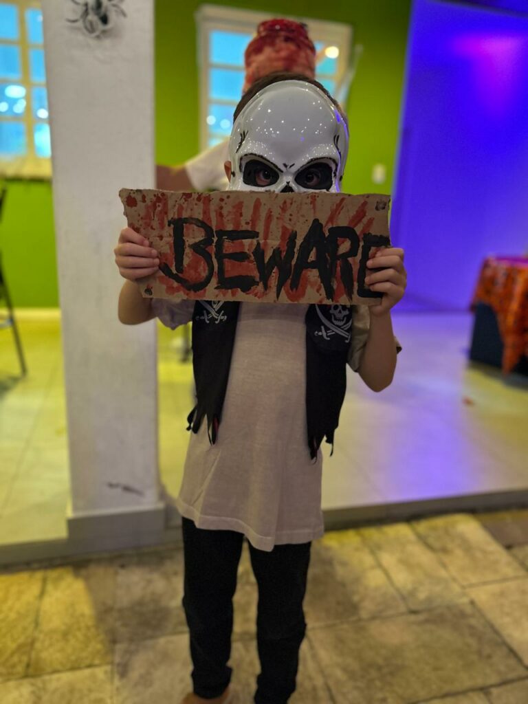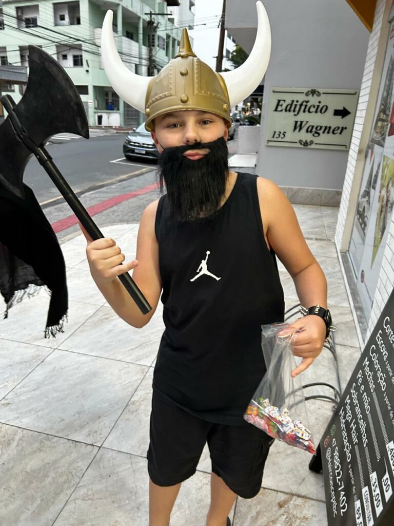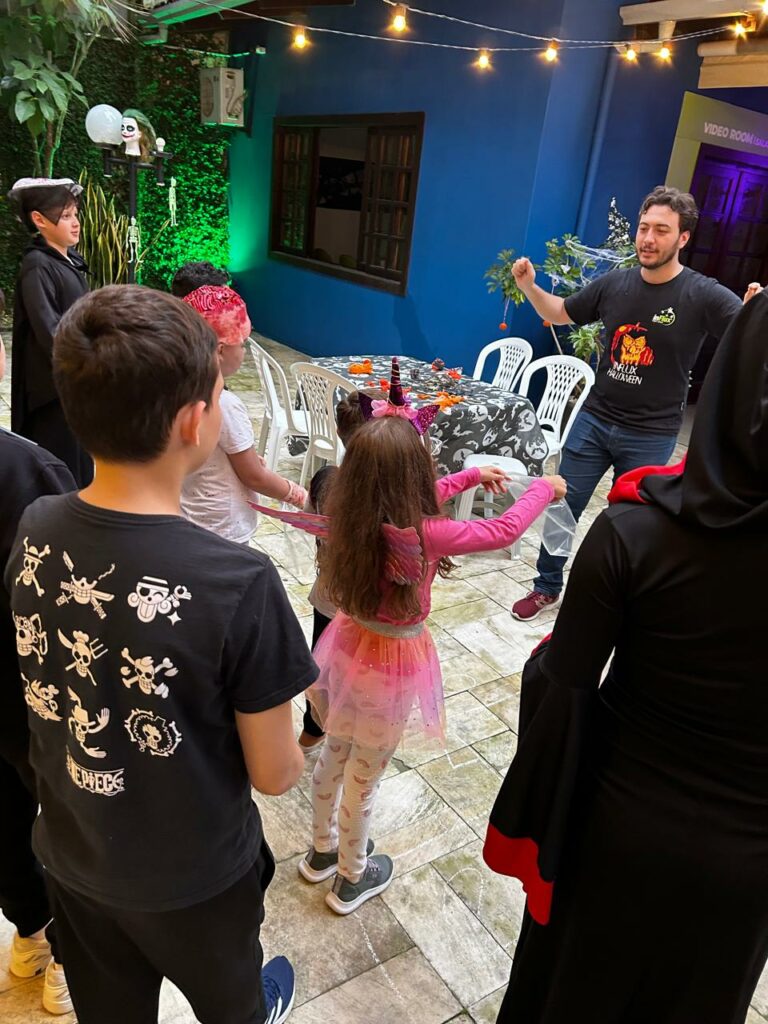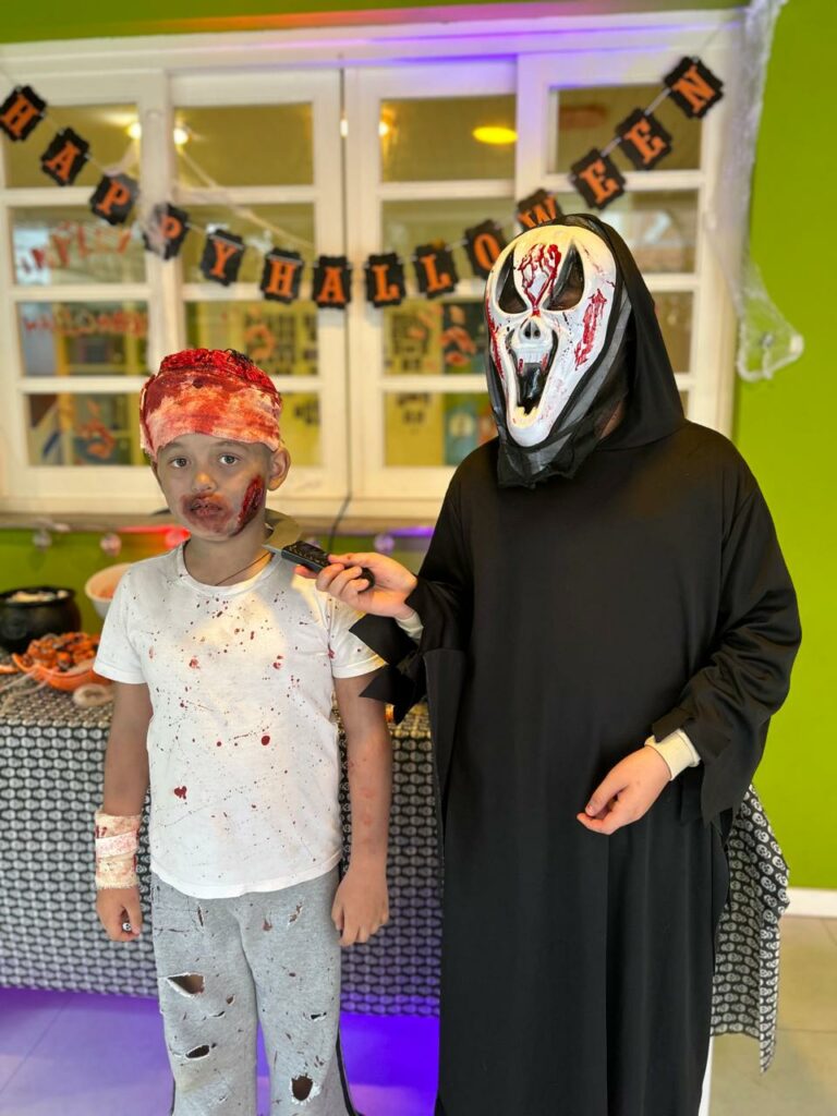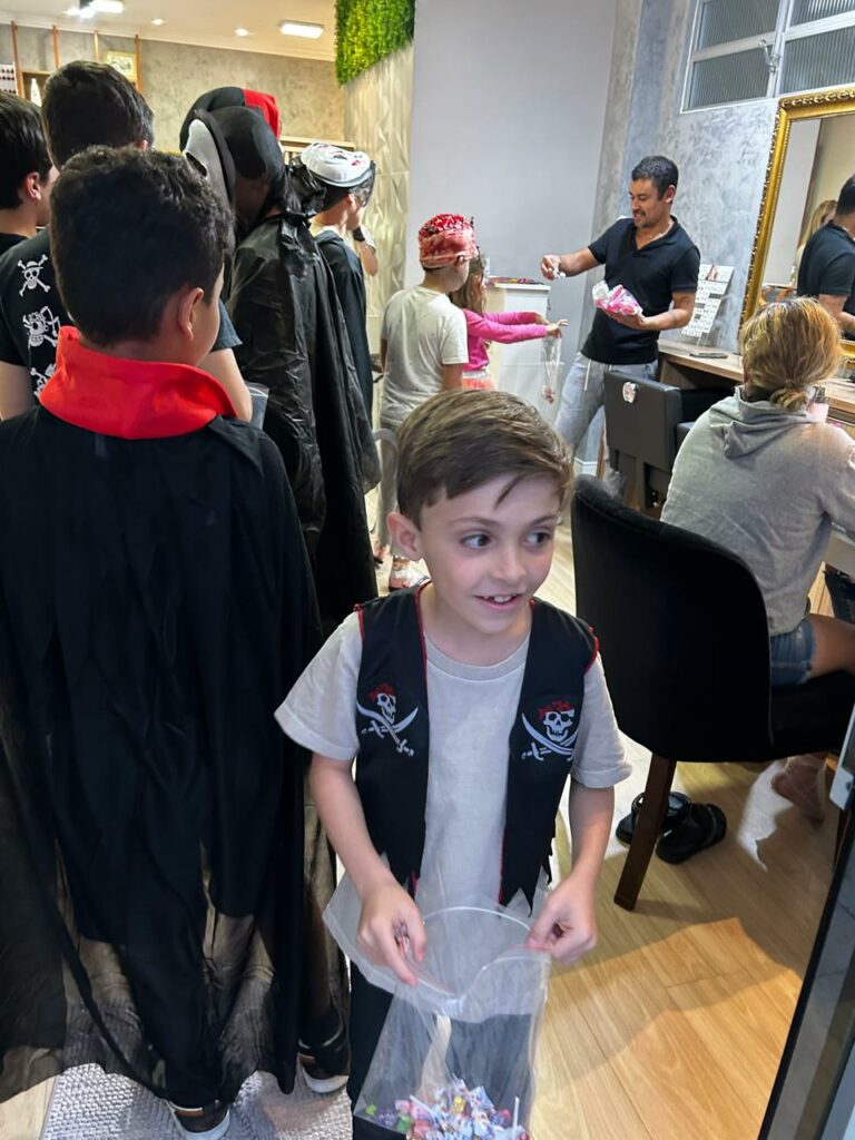 A atividade começou com a criação de decorações de Halloween feitas com massinha de E.V.A., seguida do clássico Trick or Treat, em que os alunos visitaram estabelecimentos próximos à escola para coletar doces.