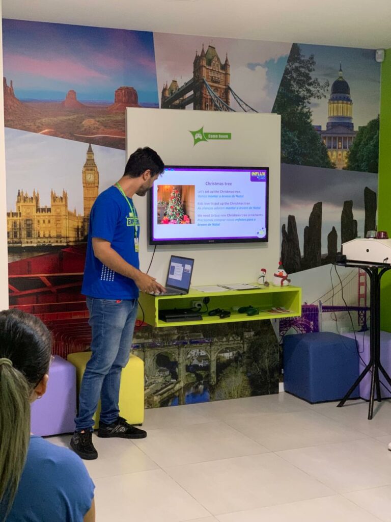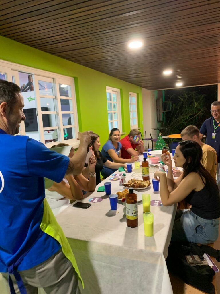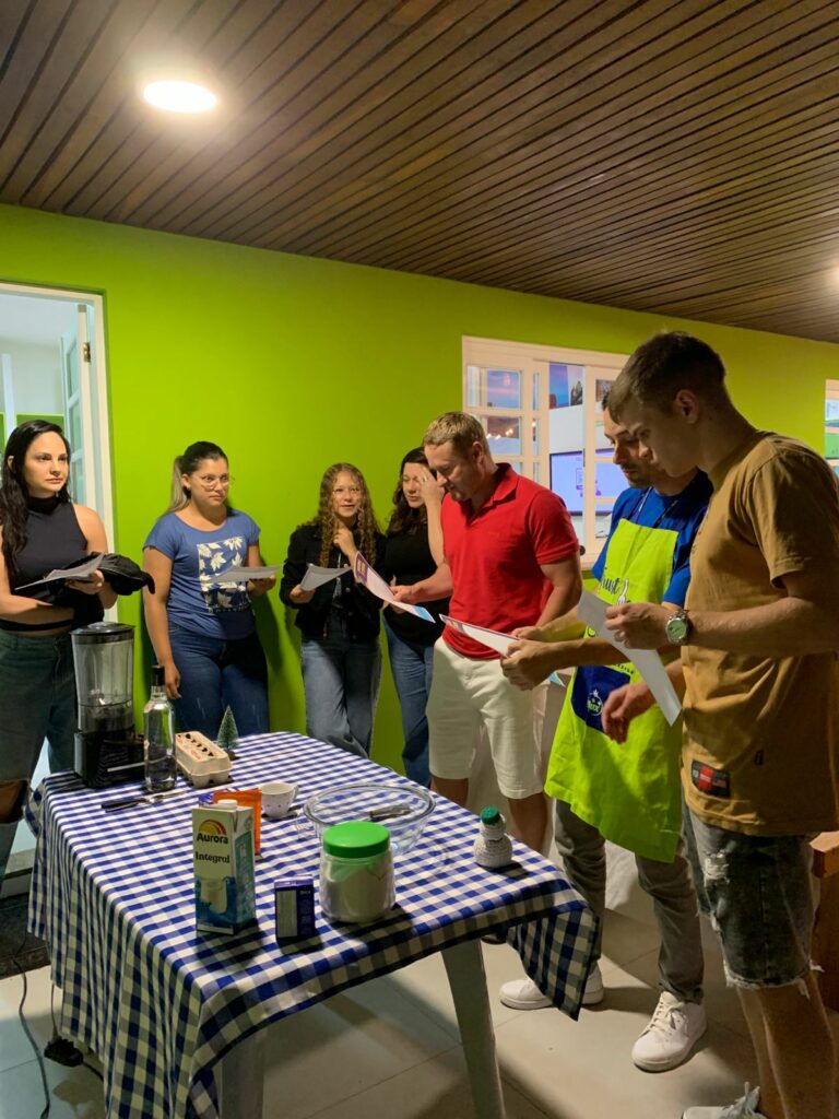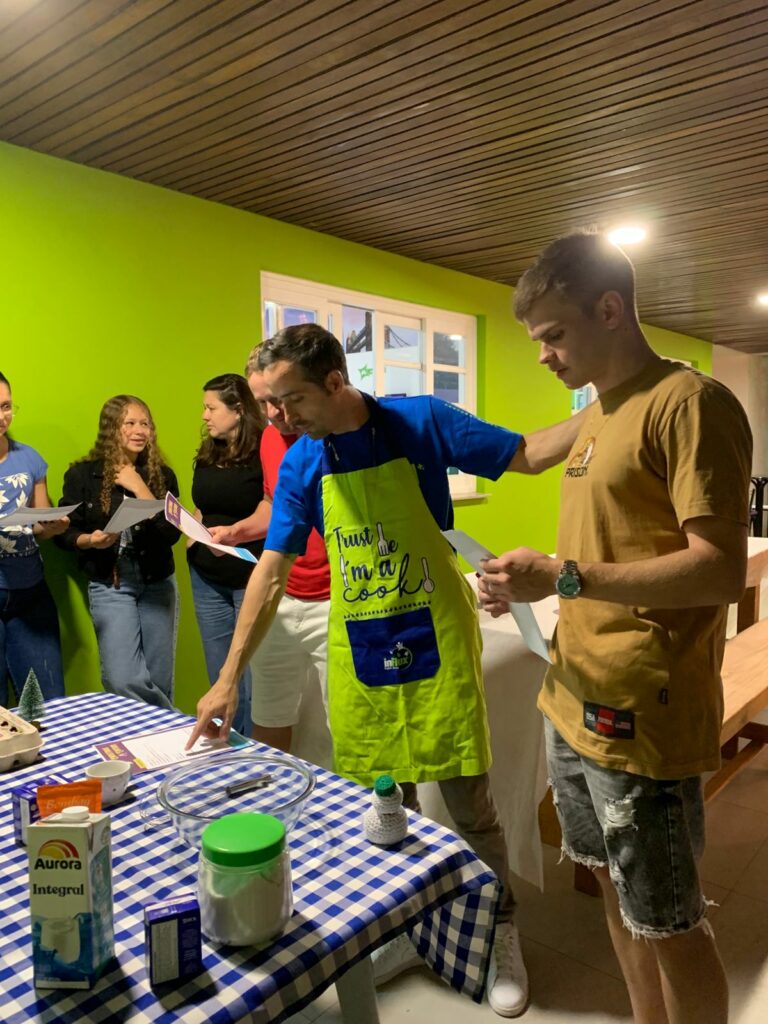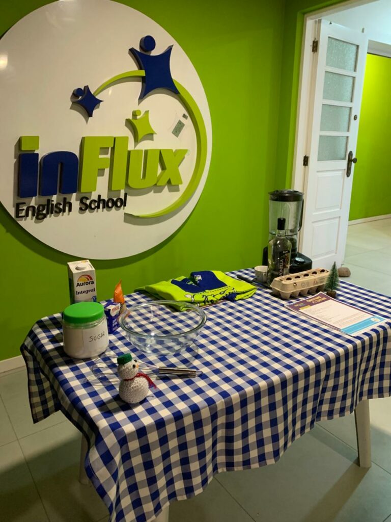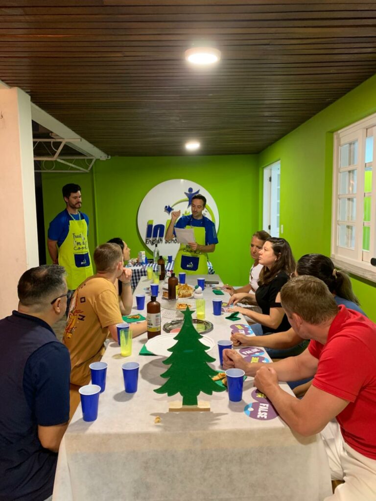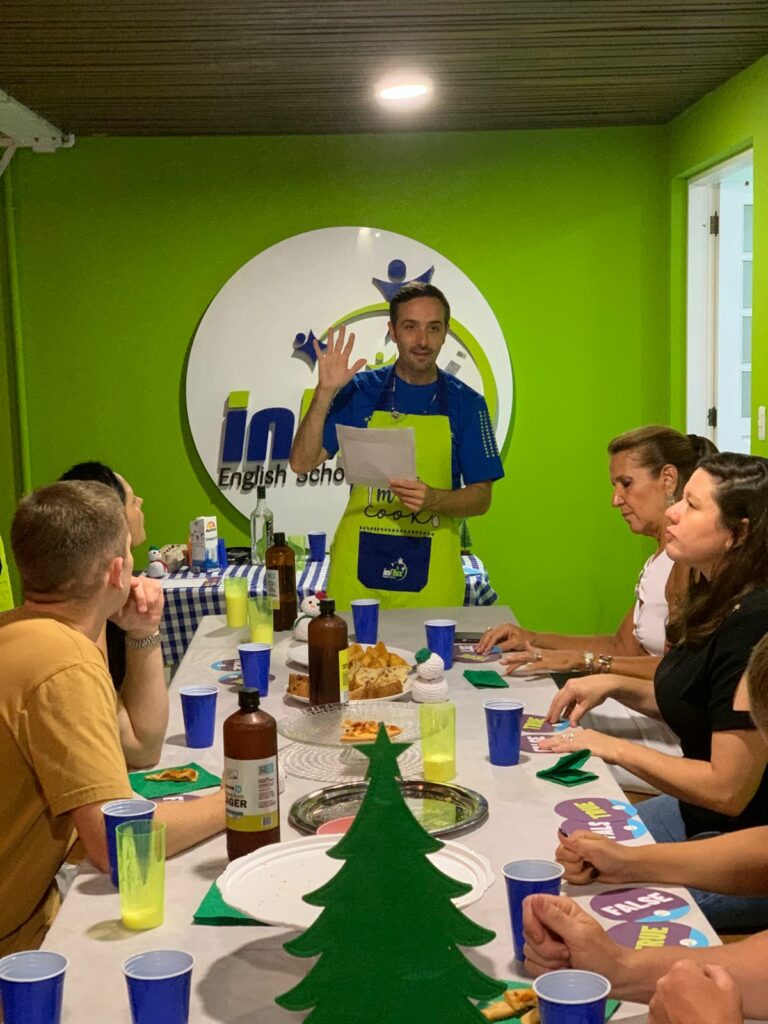 A inFlux Balneário Camboriú realizou uma Atividade Extra especial convidando os alunos de Adults a celebrarem o final do ano enquanto aprendiam sobre tradições, novos chunks e seguiam receitas típicas, como o clássico eggnog de Natal.