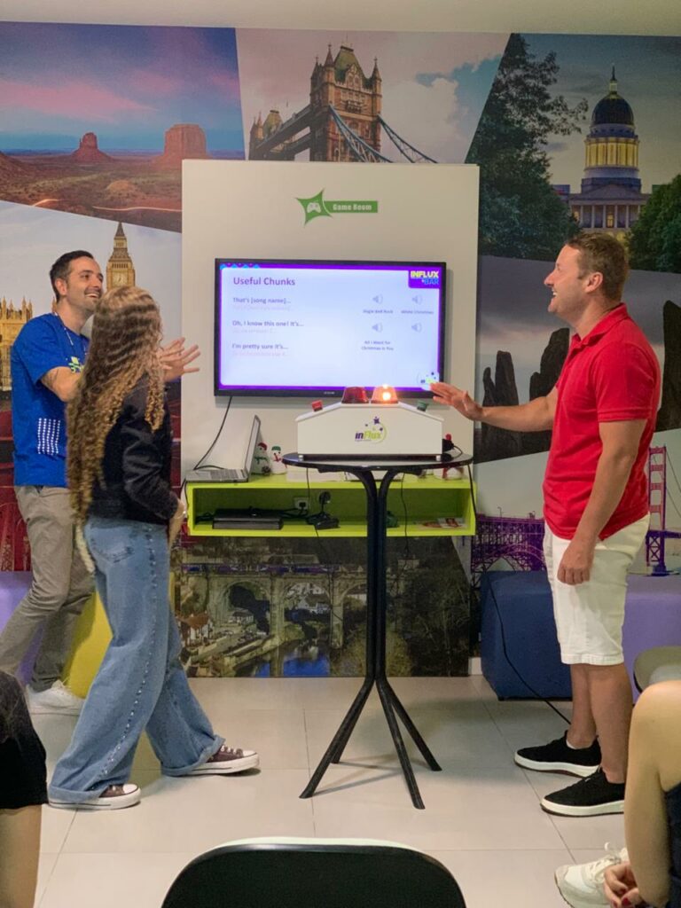 A atividade proporcionou um ambiente leve e descontraído, reforçando a prática do inglês de forma significativa e alinhada a situações reais.