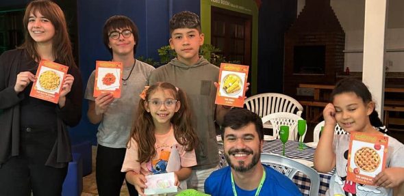 Os alunos também participaram do Turkey Tag, em que tentaram estourar a bexiga decorada de turkey dos colegas enquanto protegiam as suas. E, para finalizar, tiveram o tradicional jantar de Ação de Graças, para que pudessem experimentar o espírito do Thanksgiving, compartilhando comidas entre si e dizendo “I’m thankful for…”.