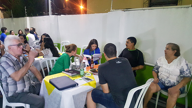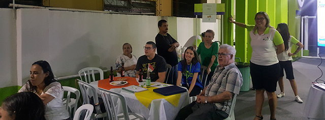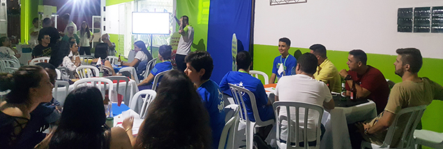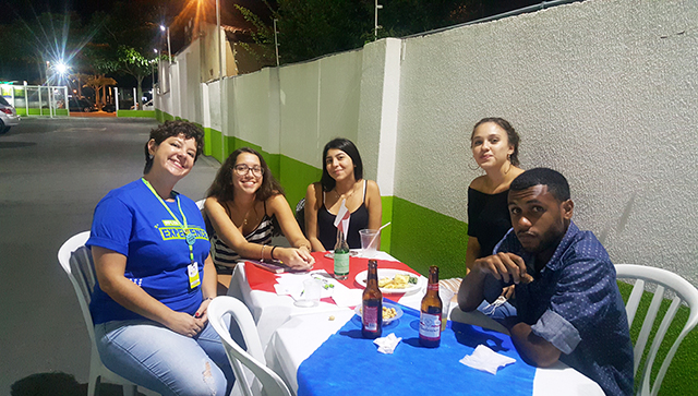 Dentre as atividades os participantes tiveram que se organizar em fila lembrando informações sobre seus colegas, logo depois de um warm up com perguntas em inglês sobre idade, família e preferências.