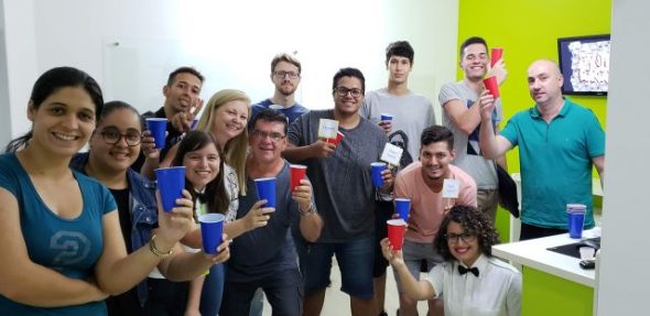 Nesta atividade extra, puderam praticar o idioma e se divertir muito enquanto jogavam alguns jogos tradicionais das festas americanas. Os alunos compartilharam vários segredos e histórias engraçadas, e todos se surpreenderam com o talento mostrado no Beer Pong.