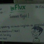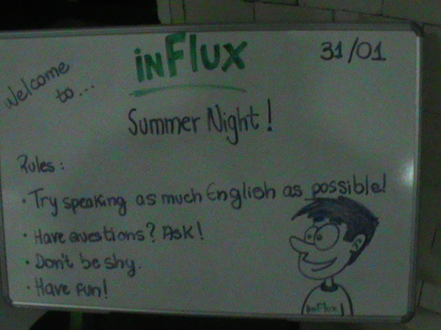 No dia 31 tivemos um inFlux Bar com o tema Summer Night. Teve comida, bebida e muito açaí. Os alunos conversaram em inglês fora de sala de aula para uma experiência divertida.