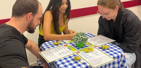 Além de testar seus conhecimentos em um divertido Board Game, os estudantes também tiveram a oportunidade de entrevistar alguém que já teve a experiência de viajar para o exterior, tudo isso praticando o inglês!