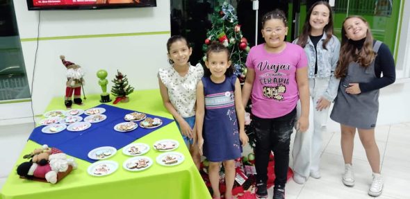 Na atividade extra do semestre a criançada deu um show de criatividade e conhecimento das tradições natalinas. Após se apresentarem e dizerem o que mais gostam do Natal cada participante participou de uma atividade de adivinhação das tradições natalinas, colocando à prova seus conhecimentos a respeito desta data tão especial. Desde os tradicionais sueters horríveis de Natal até o costume de deixar biscoitos com leite para o Papao Noel os alunos foram montando o quebra cabeça de tradições. E, falando em biscoitos, logicamente não podia faltar a decoração de biscoitos da nossa “Gingerbread Factory” ou fábrica de biscoitos de gengibre, onde cada criança pode mostrar toda sua habilidade de decoração de biscoitos montando as mais lindas e coloridas guloseimas.