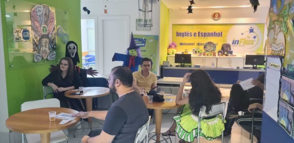 E para nossos kids e juniors não podia ser diferente! Foi um momento em que eles puderam brincar, se fantasiar e interagir com seus colegas. Por meio das brincadeiras os participantes tiveram, de forma descontraída, contato com a língua inglesa enquanto curtiam o Halloween!
