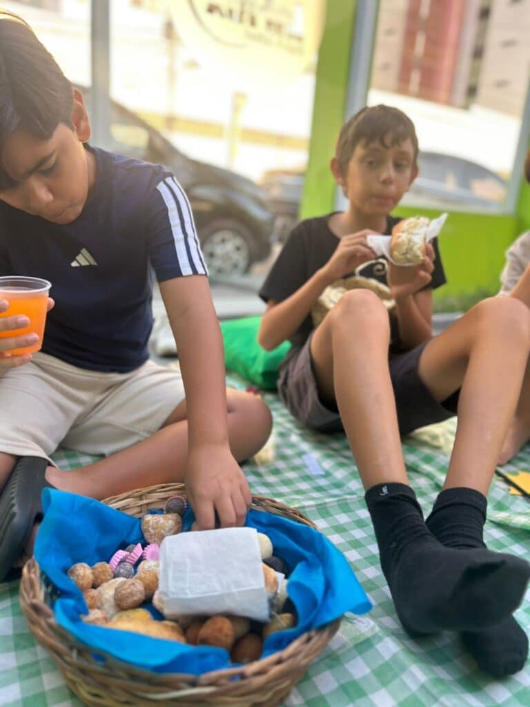 No piquenique de Ação de Graças realizado pela inFlux Caruaru, cada aluno refletiu sobre tudo que aconteceu de positivo ao longo do ano e sobre maneiras de expressar gratidão. Depois, compartilharam um pouco daquilo que faz seus corações brilhar, enquanto aprendiam sobre as tradições do feriado.