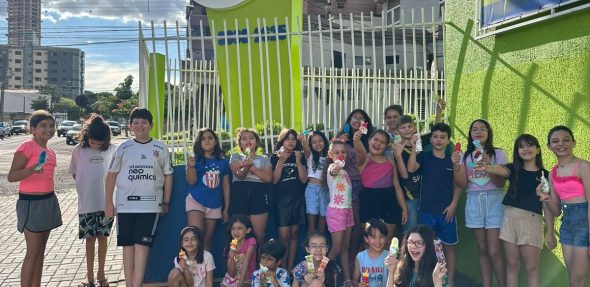 A criatividade estava rolando solta com artes coloridas, e a refrescância foi garantida com deliciosos picolés. As risadas foram sem fim durante a guerra de balões d’água. E o mais legal? Os alunos praticaram inglês o tempo todo, usando expressões como “to make sandcastles” e “It’s a grape popsicle”.