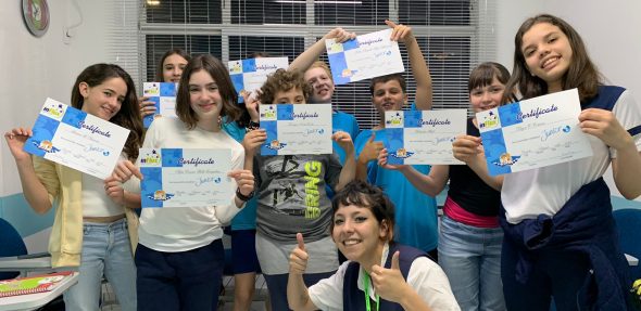 Entramos na terceira semana de aula celebrando uma grande conquista com os alunos que estavam conosco no semestre passado. Os alunos receberam seus certificados de conclusão do livro que encerraram com êxito no primeiro semestre de 2023.