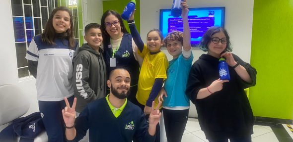 Animando uma tarde chuvosa, a inFlux Centro Cívico convidou as crianças para praticar inglês respondendo perguntas sobre assuntos de internet, tik tok, youtubers… ou seja, somente assuntos que eles manjam MUITOOO.