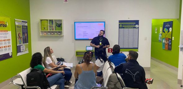 Durante a atividade, os alunos passaram por etapas como aeroporto e imigração, praticando vocabulário e expressões comuns, respondendo perguntas, apresentando documentos e desenvolvendo mais confiança ao falar inglês. No voo internacional, vivenciaram interações com a tripulação, ouviram anúncios em inglês e praticaram frases usadas dentro do avião.