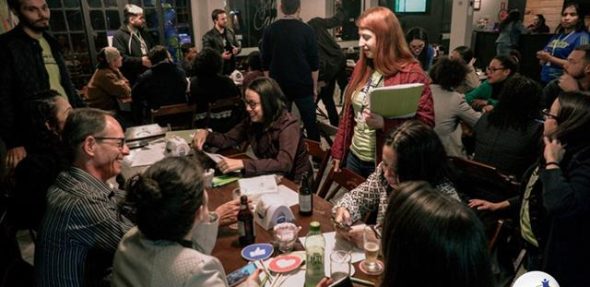 A atividade ocorreu na hamburgueria Santo Canto, os teachers foram os garçons e garçonetes, tirando o pedido dos alunos em inglês e enquanto aguardavam os pedidos, os alunos conversavam entre si in english, praticando tudo o que aprenderam até o momento.