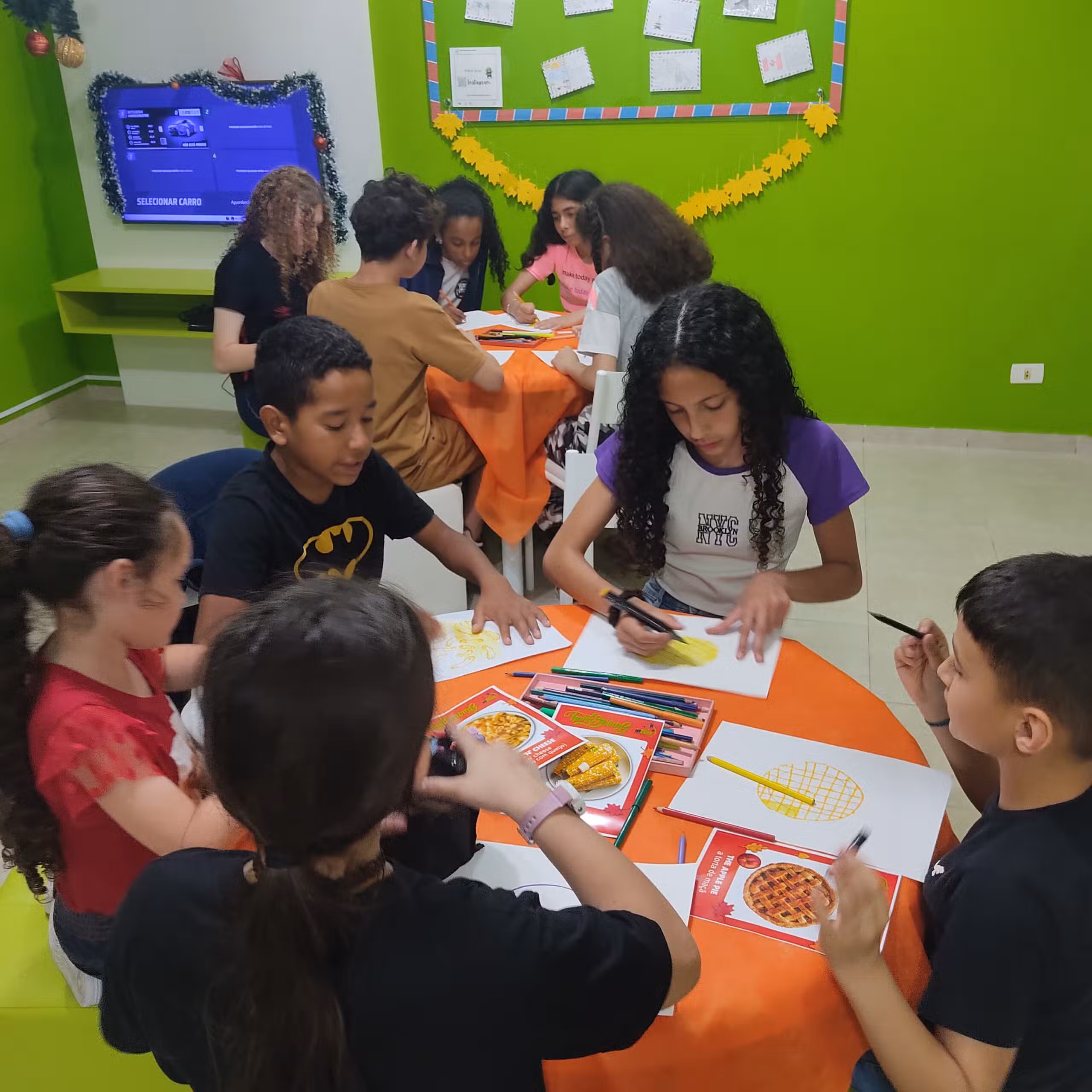 A atividade reuniu aprendizado, cultura e diversão, proporcionando uma celebração única do Thanksgiving para os alunos da inFlux Fazenda Rio Grande.