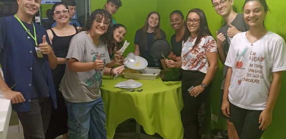 Além de conhecermos outras iguarias muito famosas dos Estados Unidos, foi colocado literalmente a mão na massa para preparar o nosso prato! “Potatoes grated over here”, “barbecue sauce over there”… e praticando chunks sobre culinária nossas hashbrowns foram tomando forma.