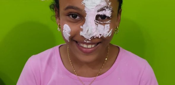 Até a Beatriz Daufenbach, aluna do Fluxie and Friends de 6 aninhos, quis uma tortada e disse que a atividade estava muito divertida!