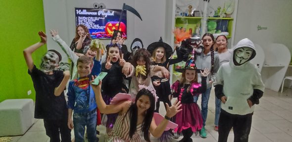 Na inFlux Fazenda Rio Grande ocorreu uma atividade extra incrível para celebrar o Halloween! Os alunos das séries Kids e Juniors se divertiram com jogos temáticos como tic-tac toe, mummy bowling e fashion contest, colocando suas habilidades em prática enquanto praticavam o inglês e, obviamente, garantir suas doçuras.