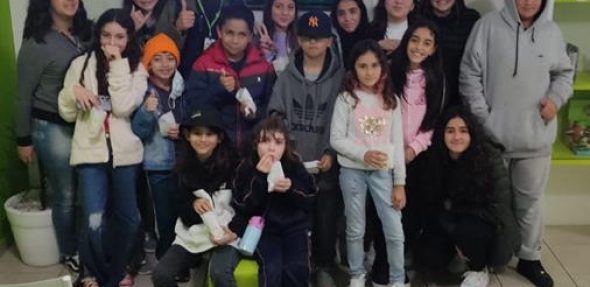 Os alunos praticaram inglês com chunks usados para comprar os ingressos, pipoca e refrigerante num momento de imersão.